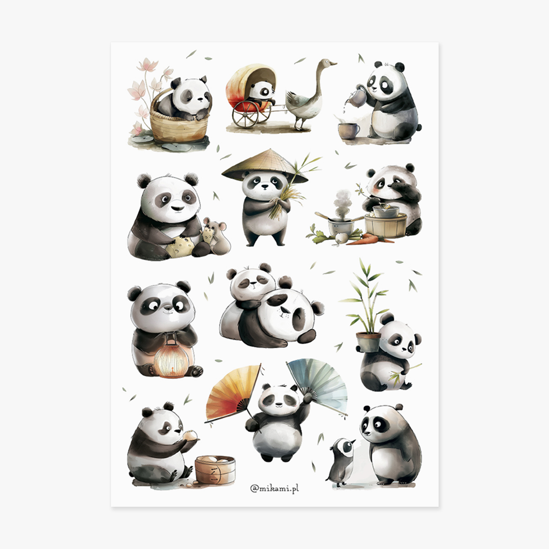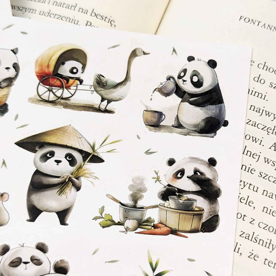 - 12 naklejek z pandami na arkuszu