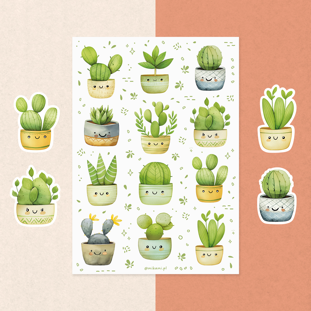Naklejki z uśmiechniętymi roślinami doniczkowymi to świetny sposób na dodanie pozytywnej energii i zieleni do różnych przedmiotów. Rośliny doniczkowe, choć małe, mają ogromny wpływ na nastrój i samopoczucie, a w tej wersji, z uśmiechem na twarzy, dodają jeszcze więcej radości. Naklejki wykonane z matowego papieru, pokryte laminatem matowym, nie odbijają światła i są wyjątkowo trwałe.