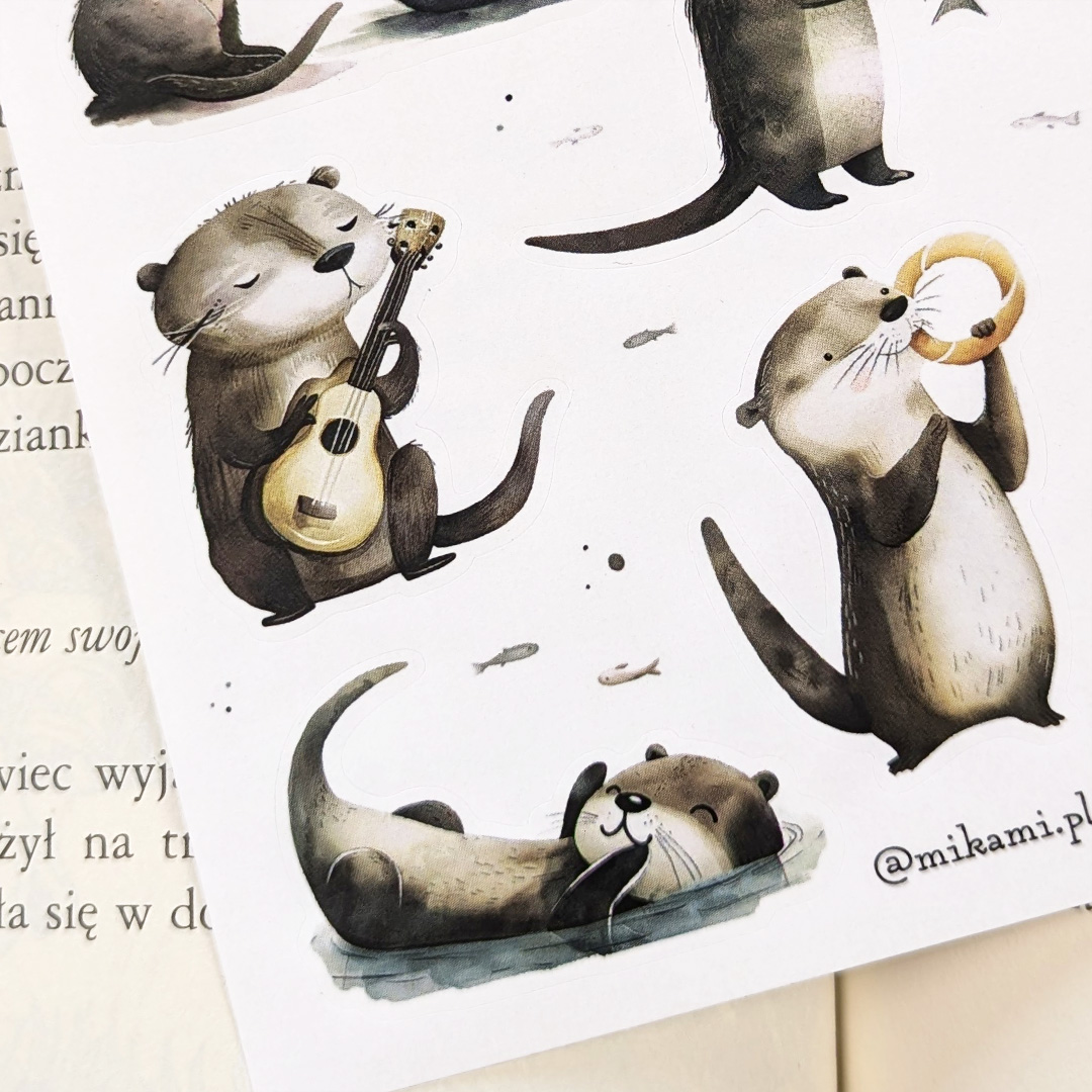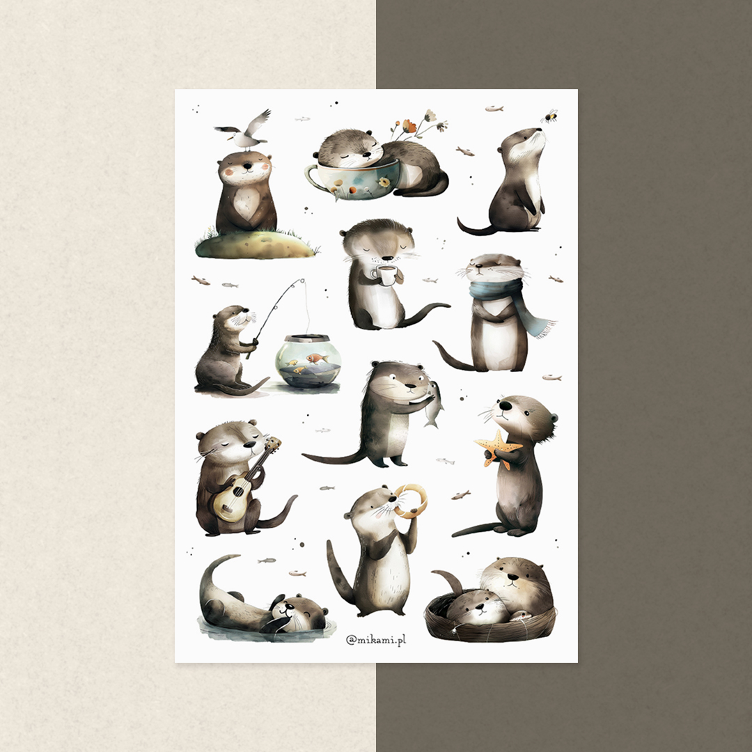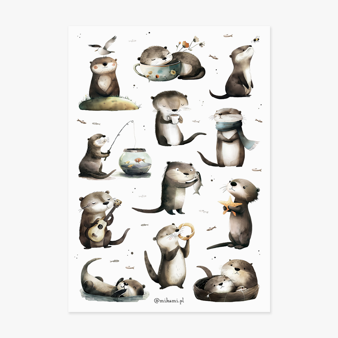 - 12 naklejek z wydrami na arkuszu